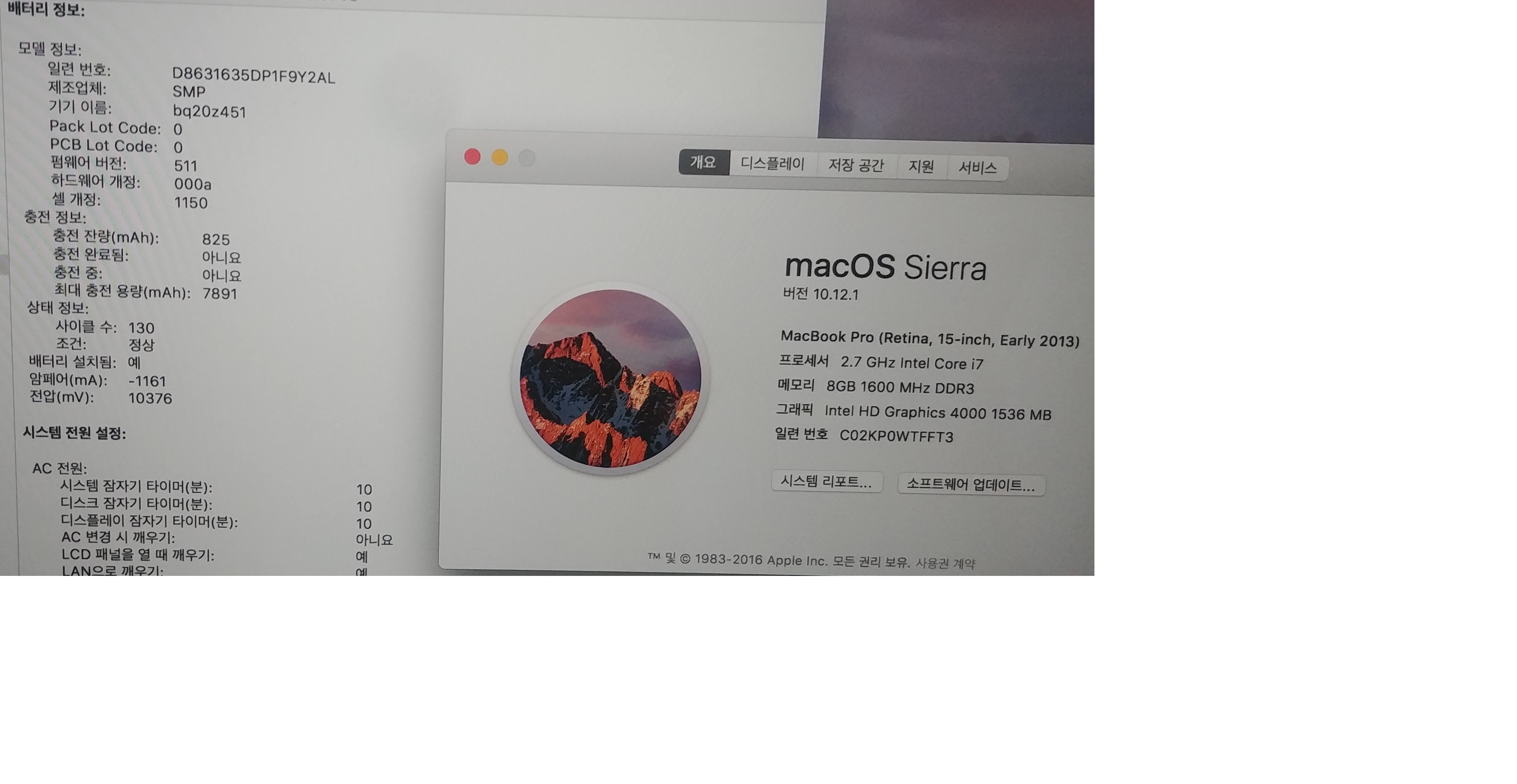 배터리 사이클 130  최대충전용량 7800