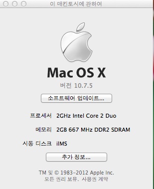 CPU : 2.0GHz Intel Core 2 Duo
