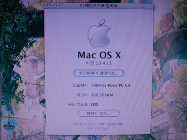 - 현재 OS는 타이거(10.4.11)가 깔려있습니다.