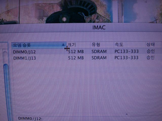 - 램은 기존꺼를 탈착하고 512MB+512MB로 교체하였습니다.